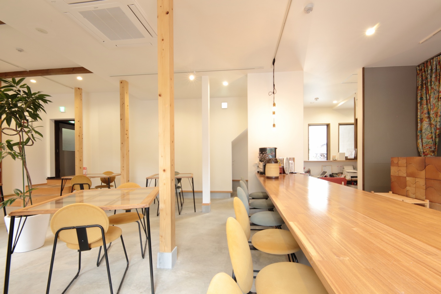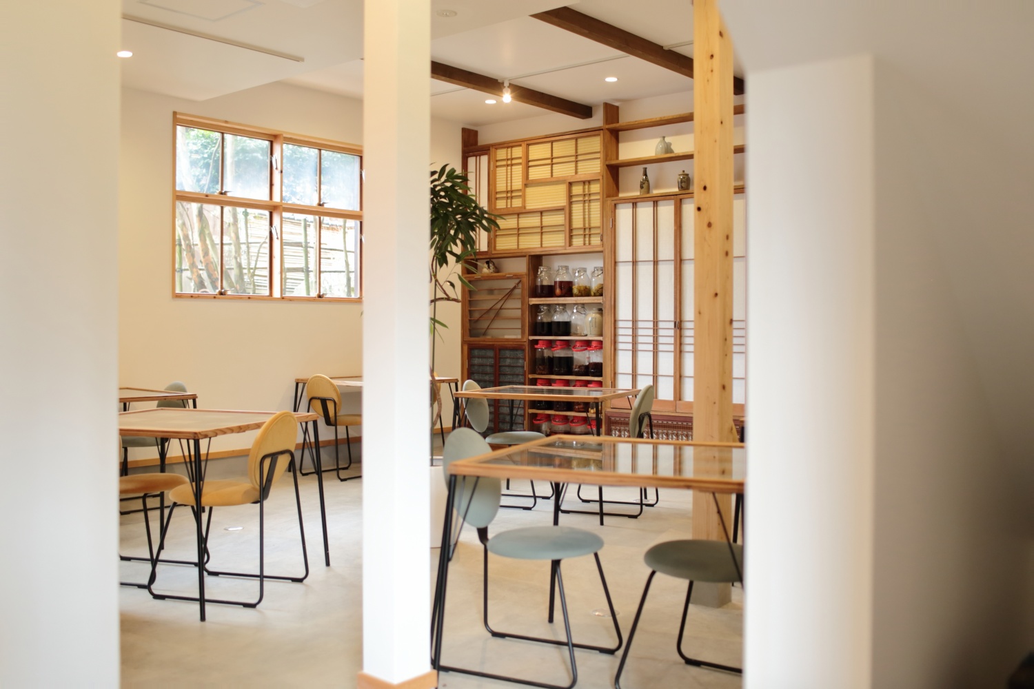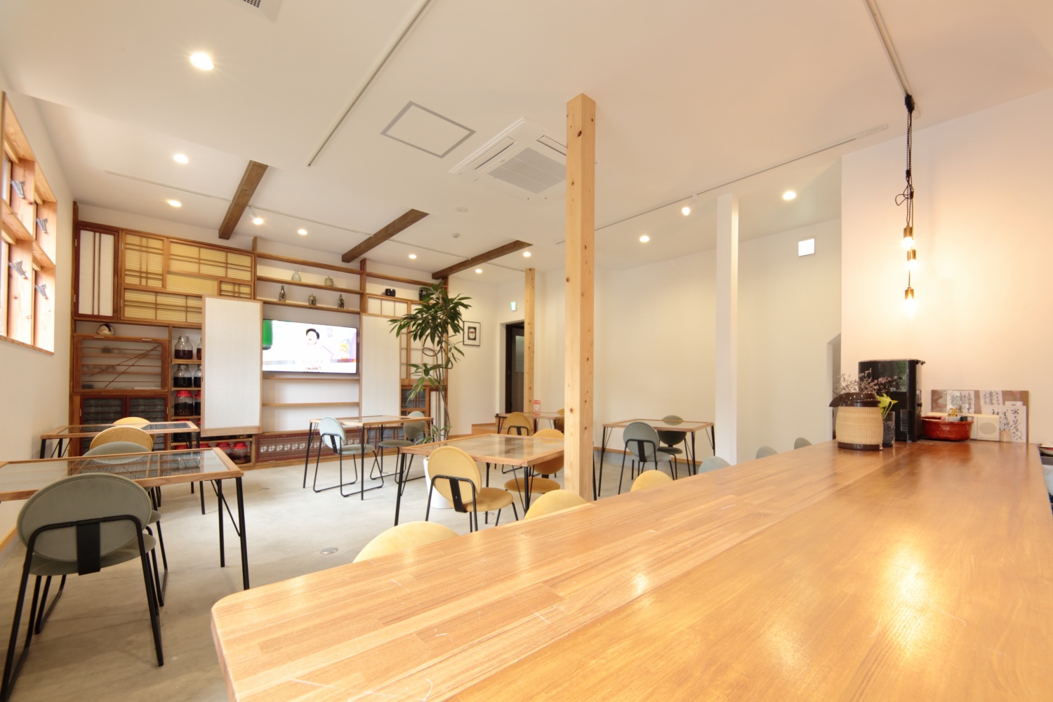 2023年~2024年にかけて行った改装によって、もともと厨房だった場所に「食堂」を作りました。私たちはこの「食堂」を富士見屋の「核」と考えています。「すべてのお客様が集える、そして私たちともご一緒させていただく時間が過ごせるこの「食堂」という場を大切にしたい、という想いから、フロントもこの食堂の一部分に設け、私たちは常にこの場所にいます。